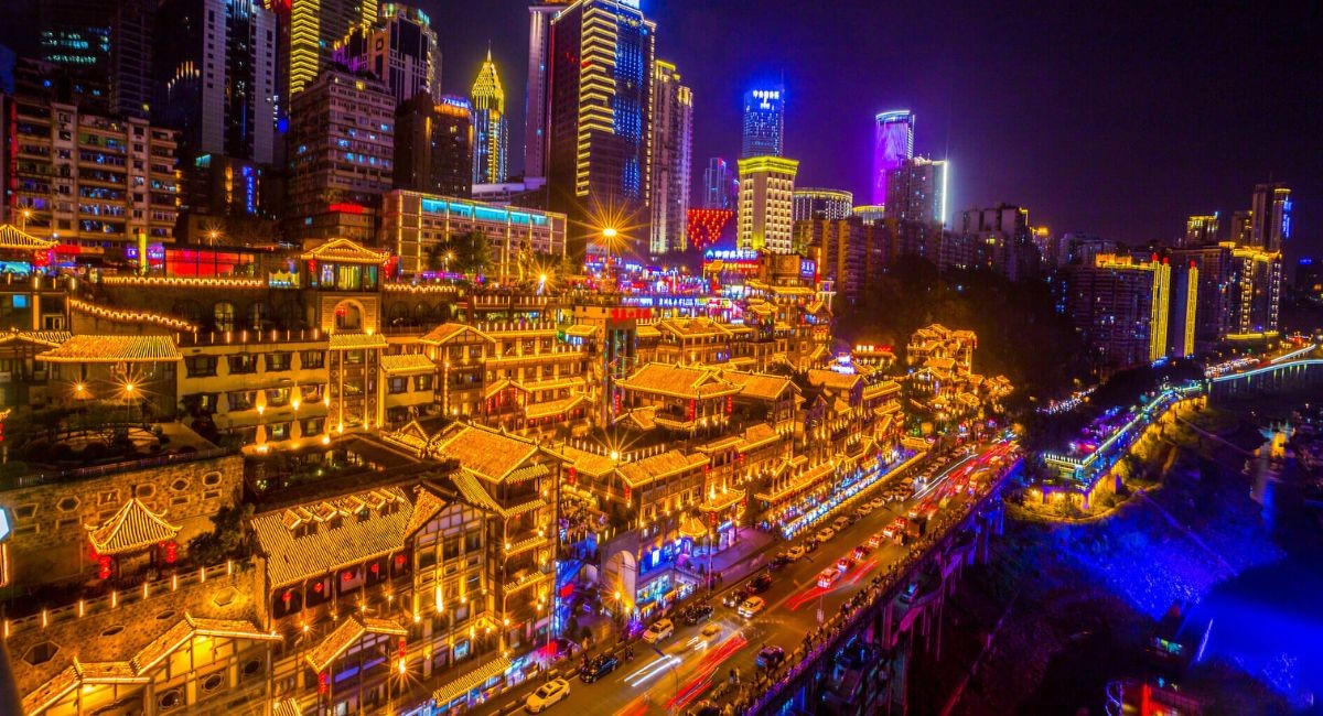 Hồng Nhai Động rực rỡ ánh đèn – điểm tham quan nổi bật của Trùng Khánh về đêm