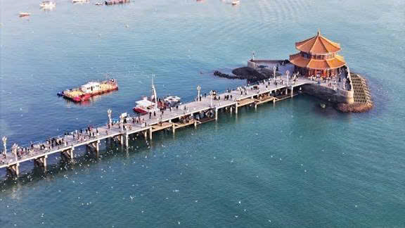 Cầu tàu Zhanqiao là biểu tượng lâu đời và quen thuộc nhất của Thanh Đảo. Công trình này vươn dài ra biển, nối đất liền với đình Hồi Lan nằm ở cuối cầu. Đây là điểm tham quan mang tính lịch sử, đồng thời là nơi lý tưởng để ngắm cảnh biển, đặc biệt vào lúc hoàng hôn khi ánh nắng phản chiếu trên mặt nước.