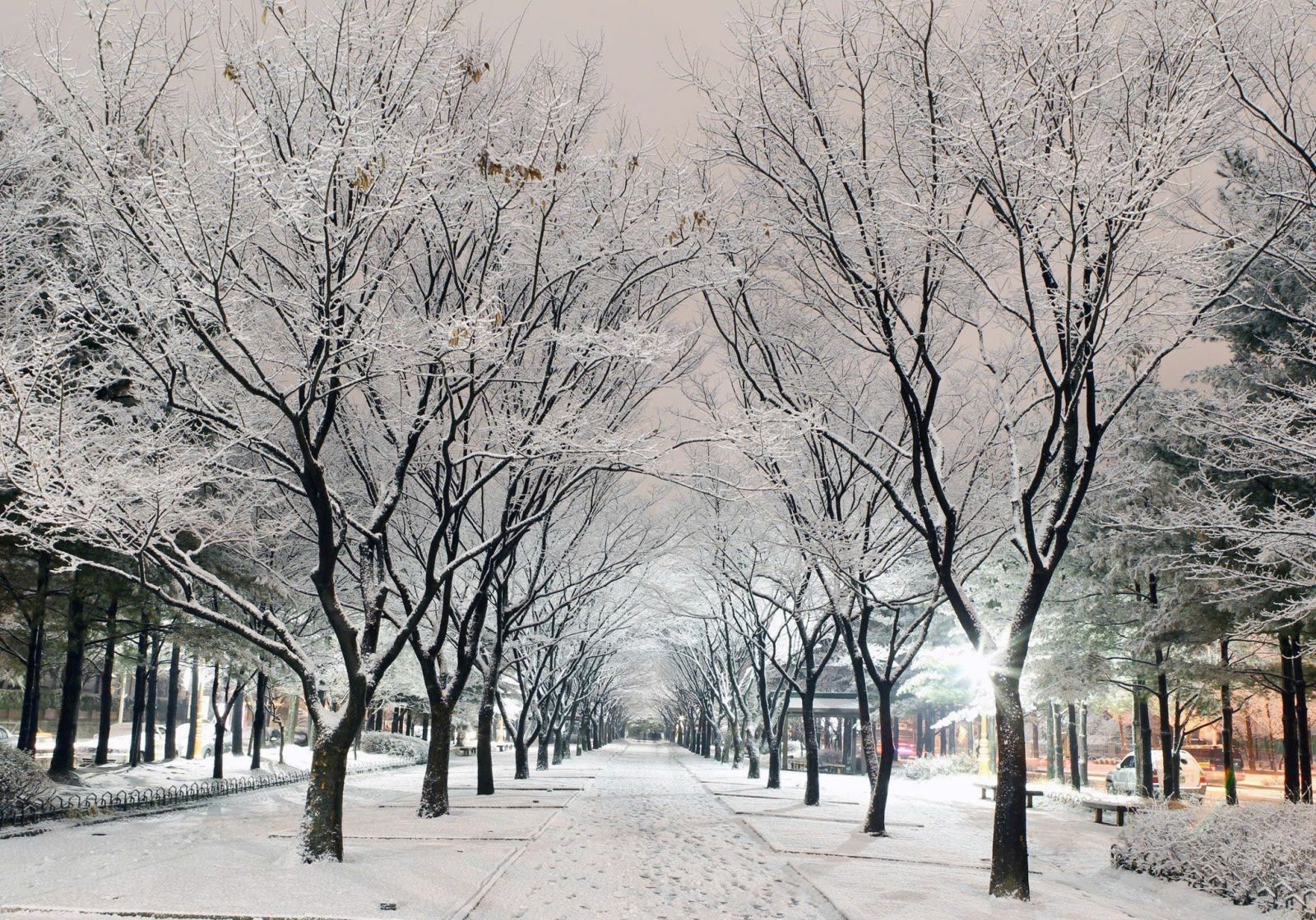 Phong cảnh đảo Nami mùa đông tuyết trắng